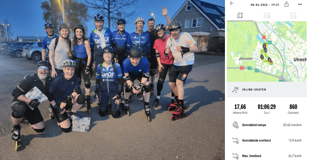 Inclusief rust net binnen de zes uur, effectief 5 uur en 22 minuten geskeelerd met een gemiddelde snelheid van 18,7km/h. Alle reden om trots op onszelf te zijn.